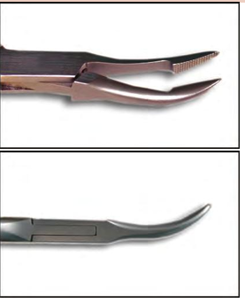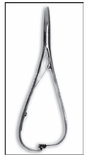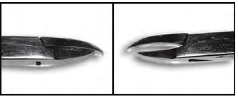 Kìm kẹp kim “Mathieu” (Hình 20) có thiết kế tiện lợi và thực tiễn, rất phù hợp cho thao tác buộc dây. Mỏ có rãnh nhám, giúp giữ chắc dây buộc mảnh.