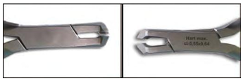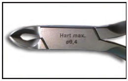 Kìm uốn/cắt face bow (Hình 35) thích hợp để uốn và cắt phần cung ngoài của face bow. Có thể dùng cho dây có đường kính đến 1,8 mm.