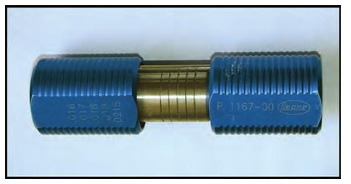 (Hình 5). Đây là dụng cụ được sử dụng thường xuyên nhất trong việc xác định vị trí gắn mắc cài. Được làm bằng thép không gỉ, dụng cụ này cho phép đo chính xác khoảng cách chiều cao của mắc cài từ bờ cắn ở các mức 3,5 mm; 4 mm; 4,5 mm và 5 mm.
